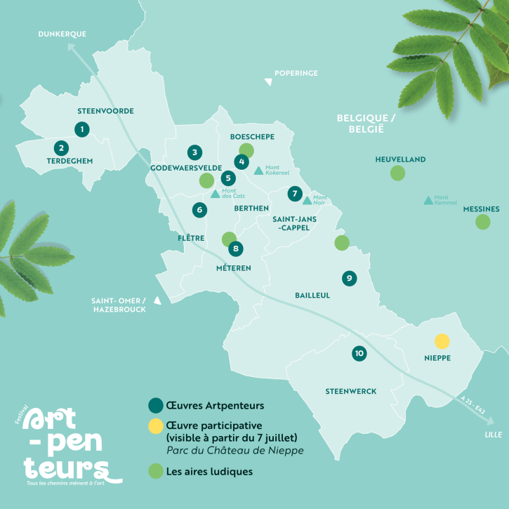 La 1ère édition du Festival Artpenteurs s'est déroulée du 1er juin au 29 septembre 2024. (Re)découvrez les œuvres monumentales qui ont investi les paysages du Cœur de Flandre !