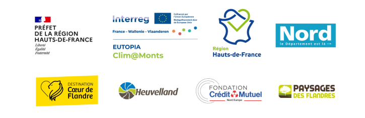 Le Festival Artpenteurs fait partie des actions soutenues par le projet Interreg Clim@Monts-Eutopia qui vise à restaurer la trame écologique, à sensibiliser et à mieux accueillir le public sur le territoire transfrontalier des Monts de Flandre. Tout comme en 2024, cette édition bénéficie donc du soutien de l’Union Européenne, ainsi que d’autres partenaires institutionnels, tels que la Région Hauts-de-France, le Département du Nord, l’Office de tourisme Destination Cœur de Flandre, ainsi que la commune belge du Heuvelland.